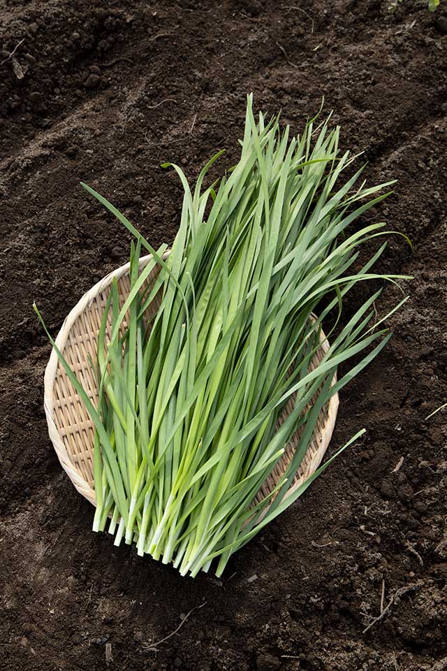 濃厚で旨味がつまった「上等品のニラ」を作り続けられるよう、日々、ひと手間かけた土づくり、丁寧な手仕事を心がけています。